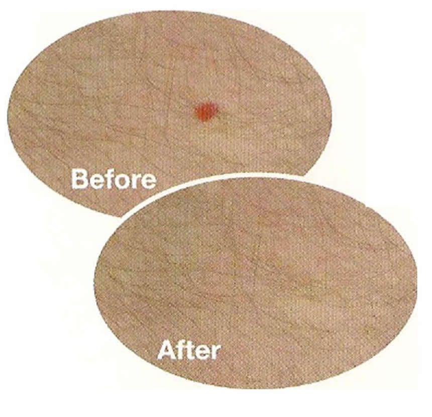 In the case of skin tags the current destroys the vessels 'feeding' the blemish 'starving' it of nourishment resulting in its eventual demise.